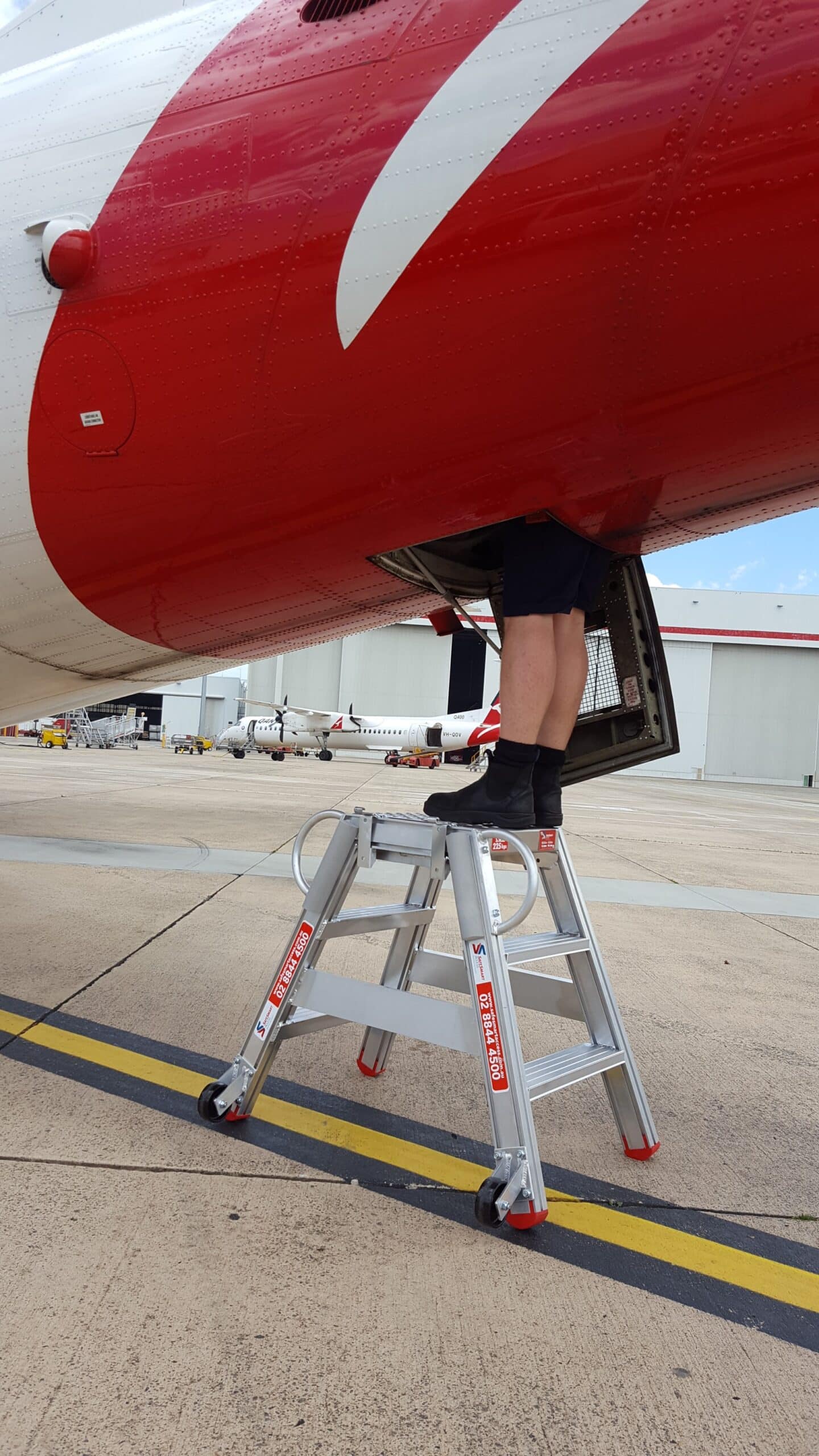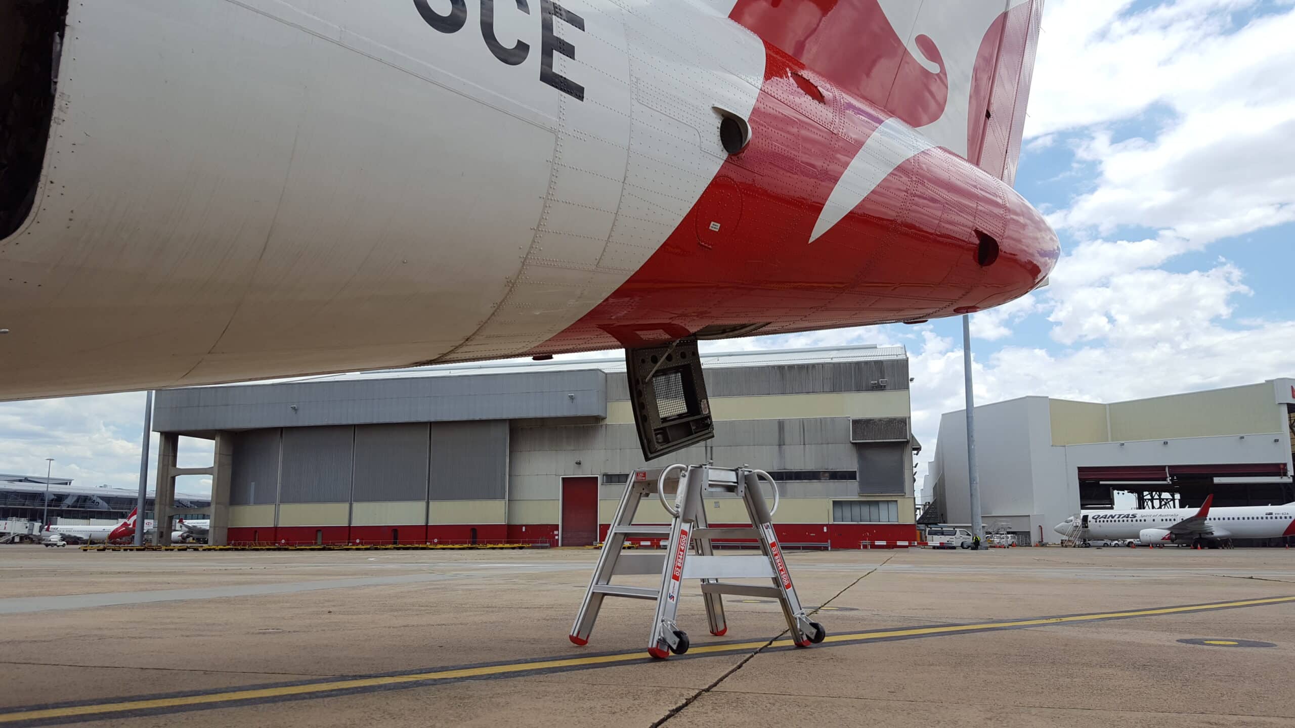 Get high enough to safely stand inside recesses, wheel wells and more, or use the sliding guardrail and gate set for fall protection when working on the outside of the fuselage.