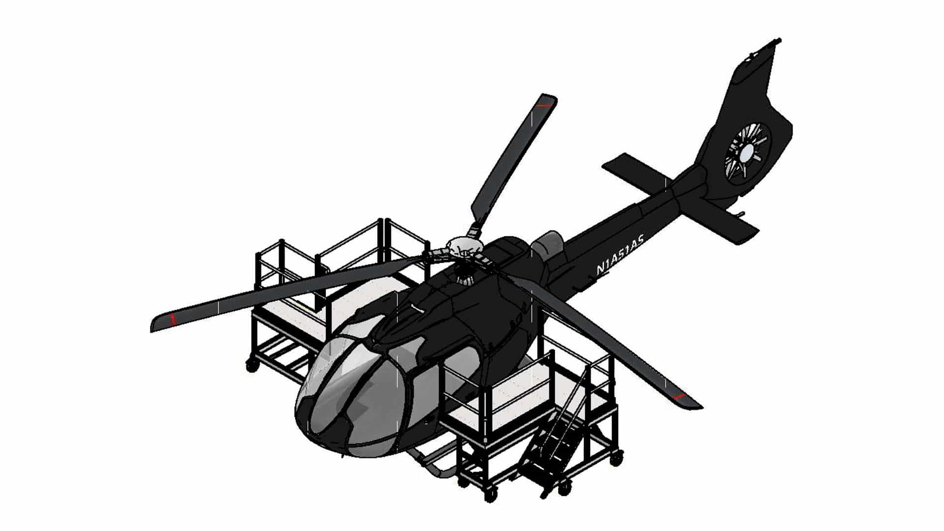 The specialized maintenance stand for the Airbus H130 helicopter (EC-130) provides safe, comprehensive, and highly efficient access for technicians. This versatile, single-engine aircraft requires specialized attention, and this H130 Flight Line Stand is precision-designed to integrate seamlessly into daily hangar and flight line operations. It ensures all critical maintenance areas of the H130 are within safe, ergonomic reach, minimizing downtime and maximizing airworthiness.