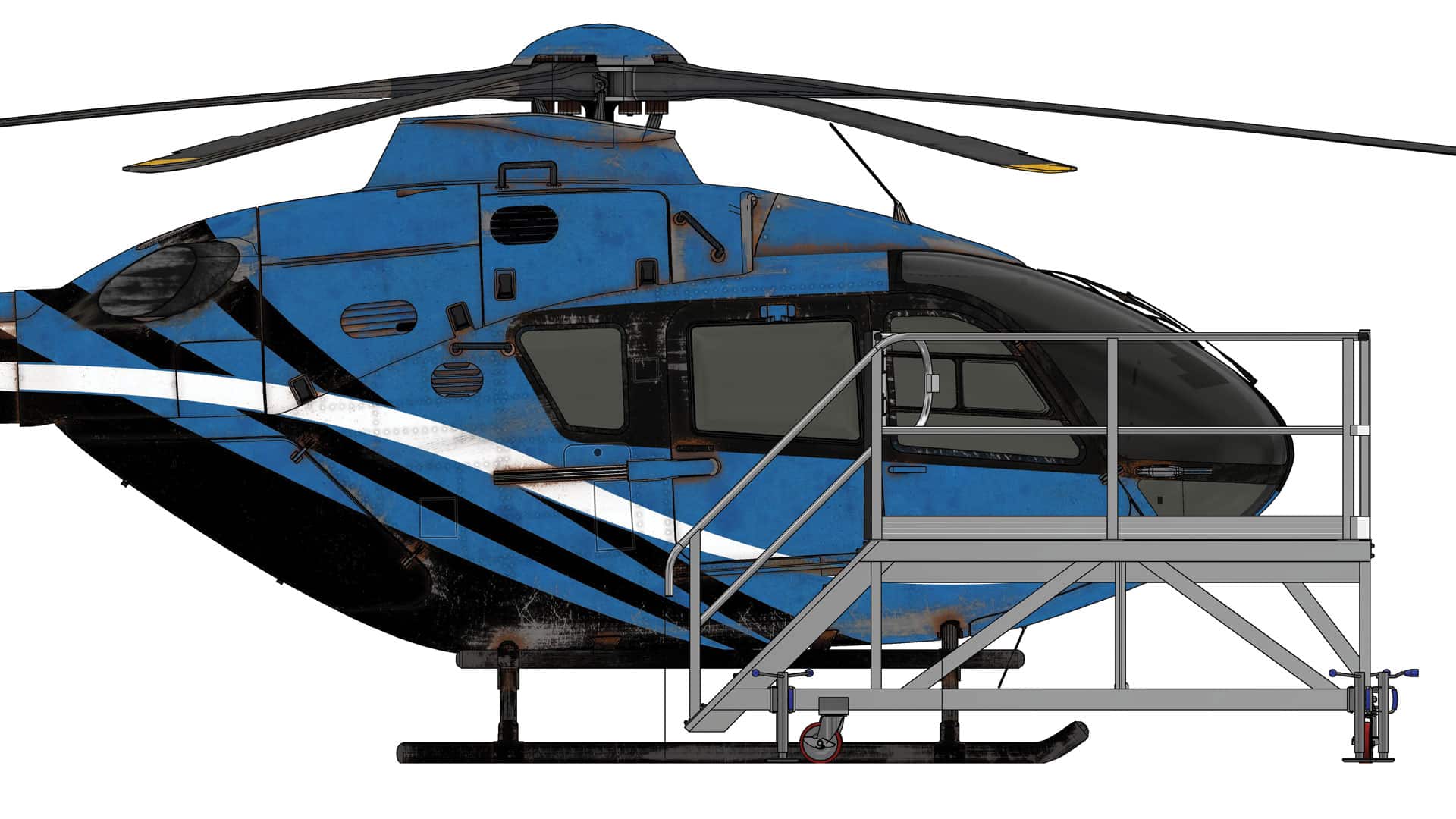 This dedicated maintenance solution for the Airbus H135 helicopter delivers exceptional safety and efficiency when accessing the nose and windshield section of the aircraft. Engineered to match the H135’s distinct contours and forward-section maintenance requirements, this nose access platform is an indispensable asset for MRO teams focused on safe operations, high-quality workmanship, and maximum aircraft uptime.