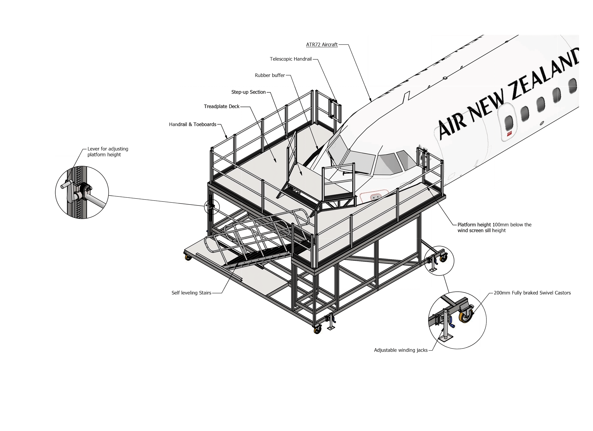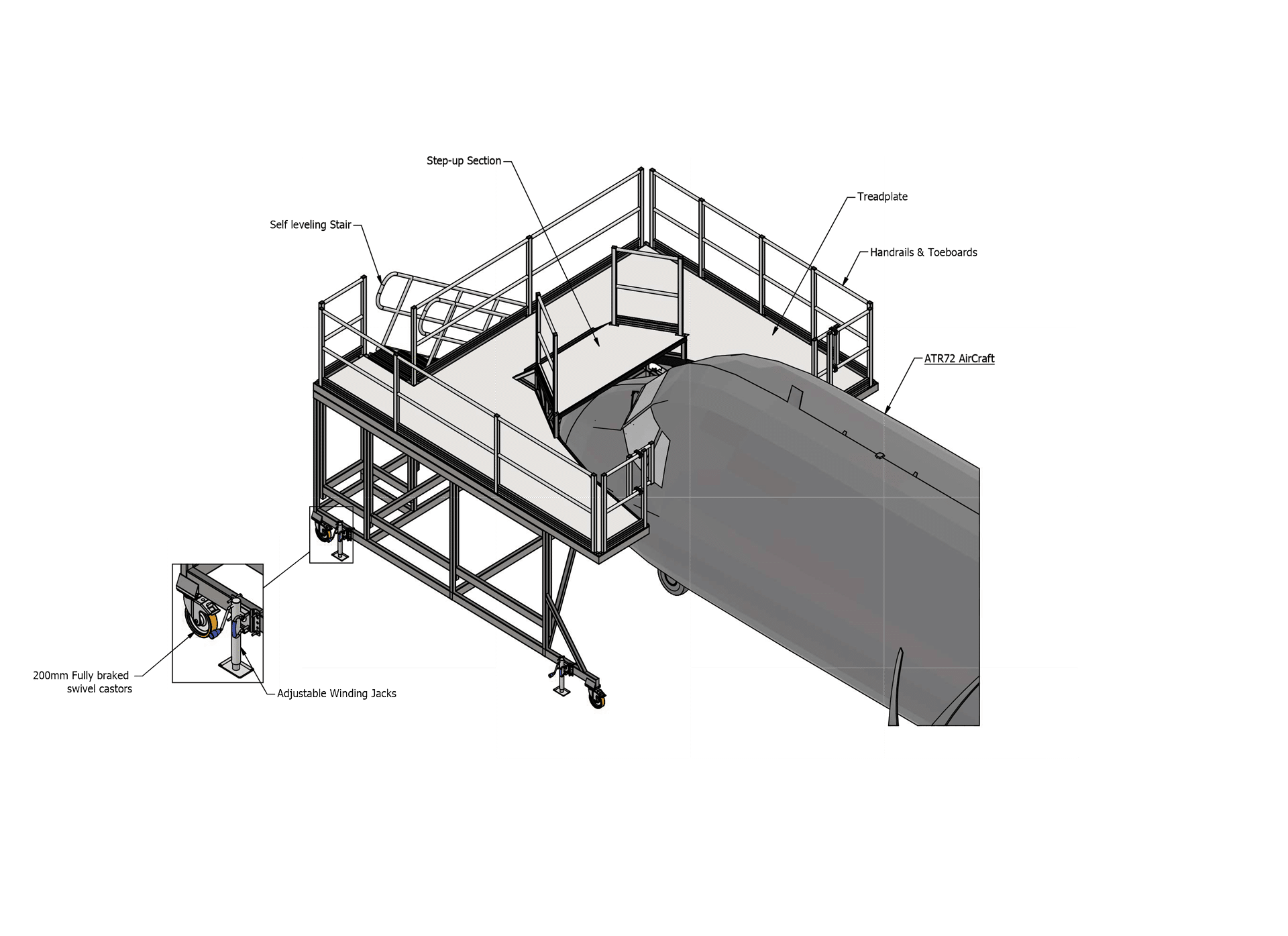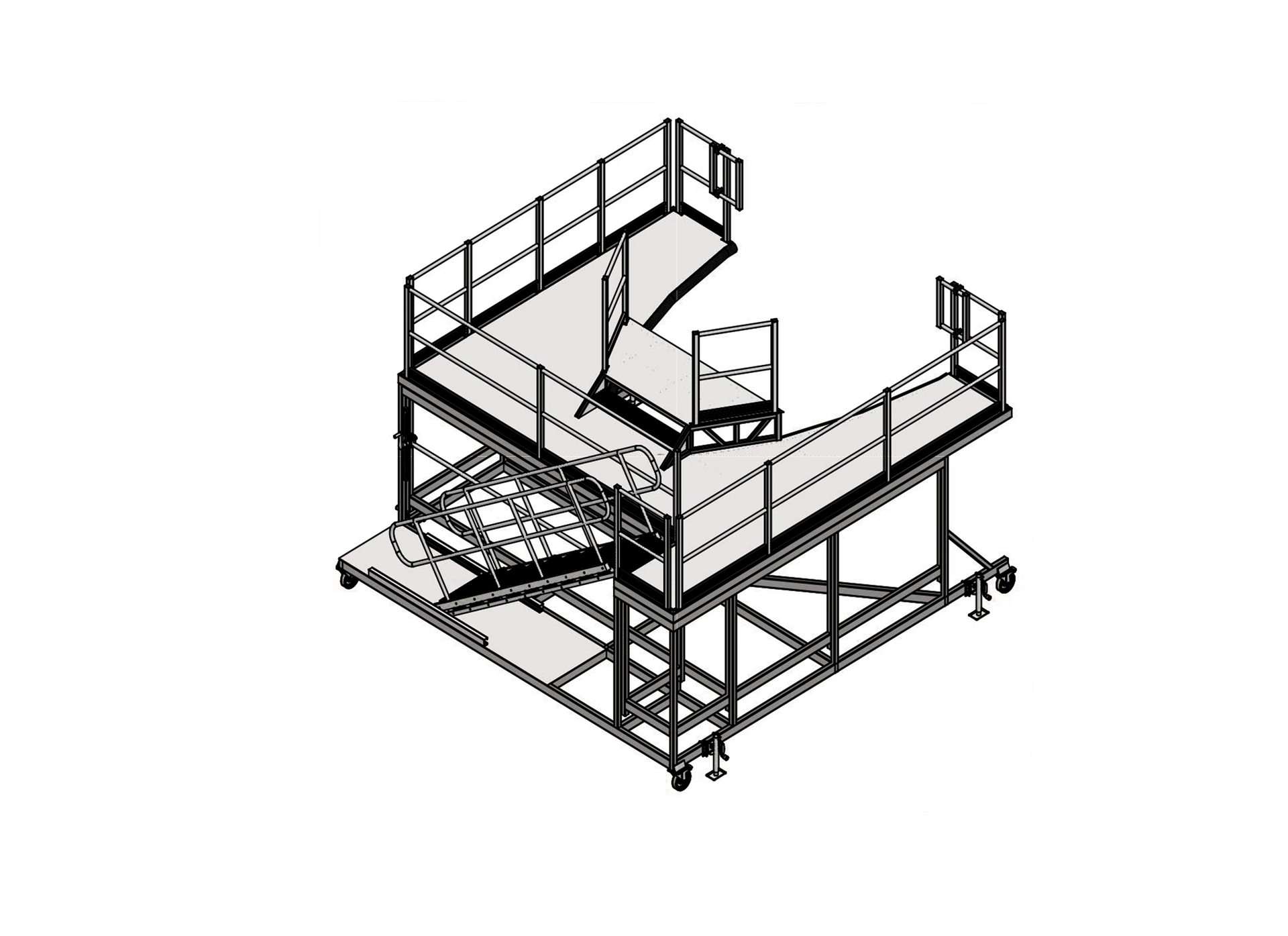 • Sliding handrails to configure to fuselage and eliminate any gaps between the platform and the aircraft.