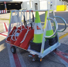 The Aviation Chock and Cone Trolley is designed to keep your ramp neat and tidy by providing an efficient storage area for chocks and cones. It significantly slashes operational time: one person can quickly and easily move around an aircraft to place or remove chocks and cones. This efficient solution also slashes manpower: one person can complete the task in the same amount of time it previously took 4 people. For other general access solutions, consider our General Purpose Engineering Access Stairs.