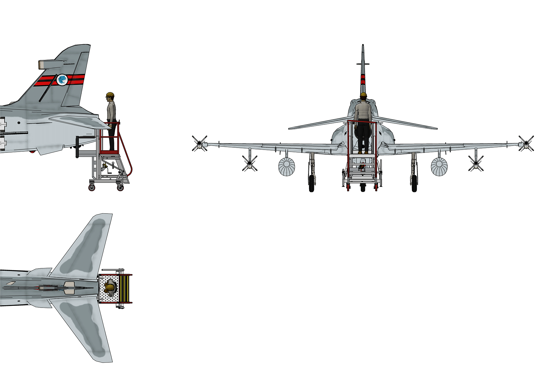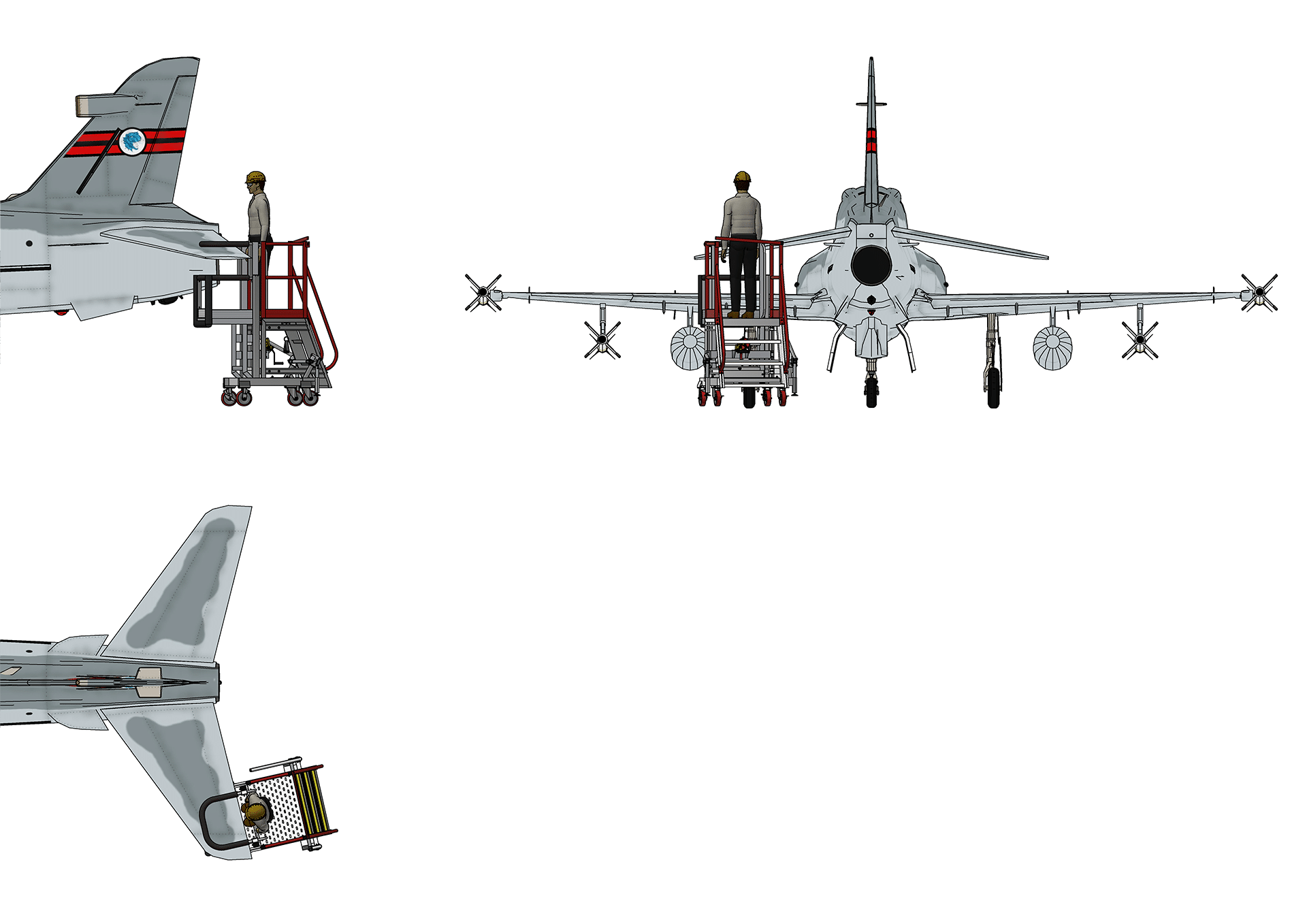 The BAE Hawk Fighter Tail Access Platform is an indispensable maintenance solution engineered for superior access to the aft section of the BAE Hawk fighter jet. It is specifically designed for use within the spatial confines of compact hangar environments. This sturdy and intelligently designed stand revolutionizes how maintenance personnel conduct inspections, repairs, and component removal in the critical tail area, ensuring comprehensive coverage and enhanced safety. We prioritize people safety first.