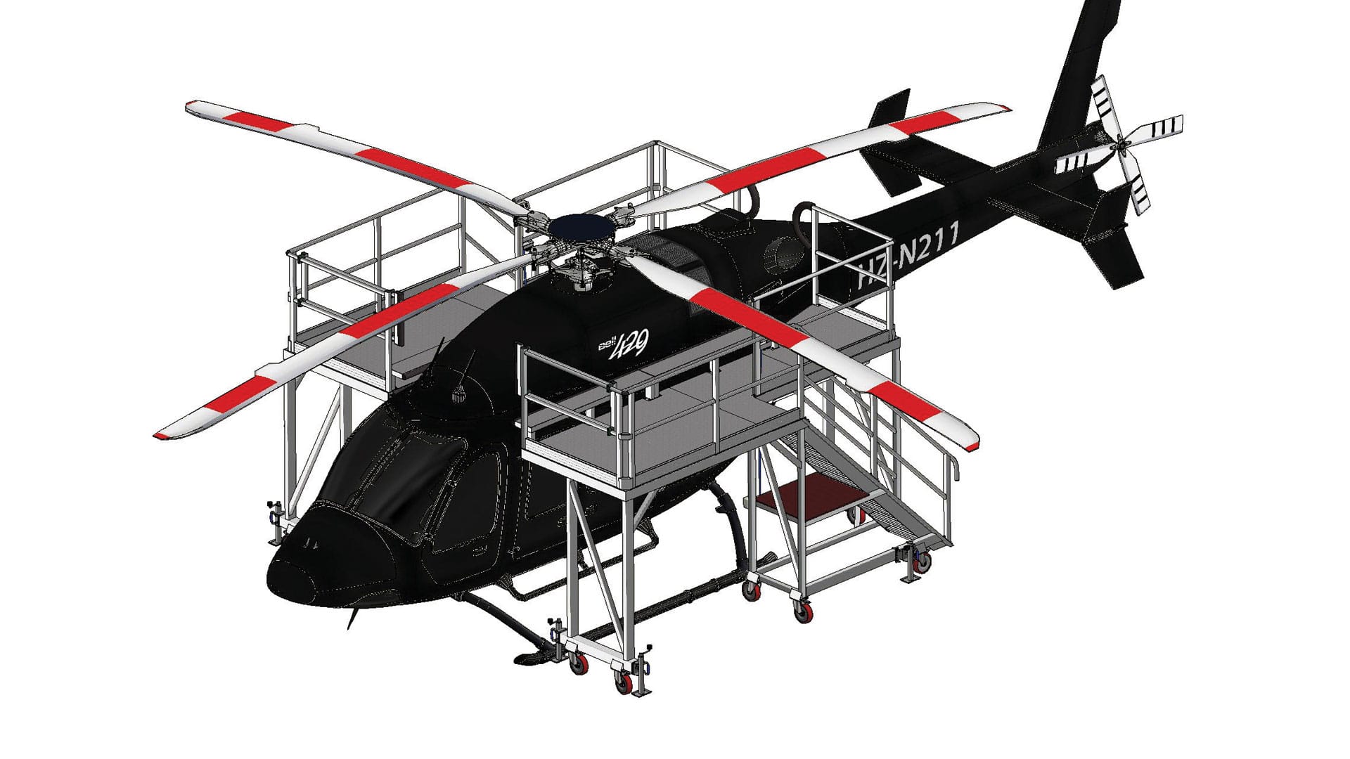 The Bell Helicopter 429 Slim-Line Side Access Platform is an expertly engineered solution for technicians who need safe, efficient, and precise access during Bell 429 helicopter maintenance. This access system, often referred to as a 429 Slim-Line Side Access Platform, is specifically designed to facilitate critical inspections, repairs, and servicing procedures around the aircraft’s fuselage, focusing on side access and the main rotor area.