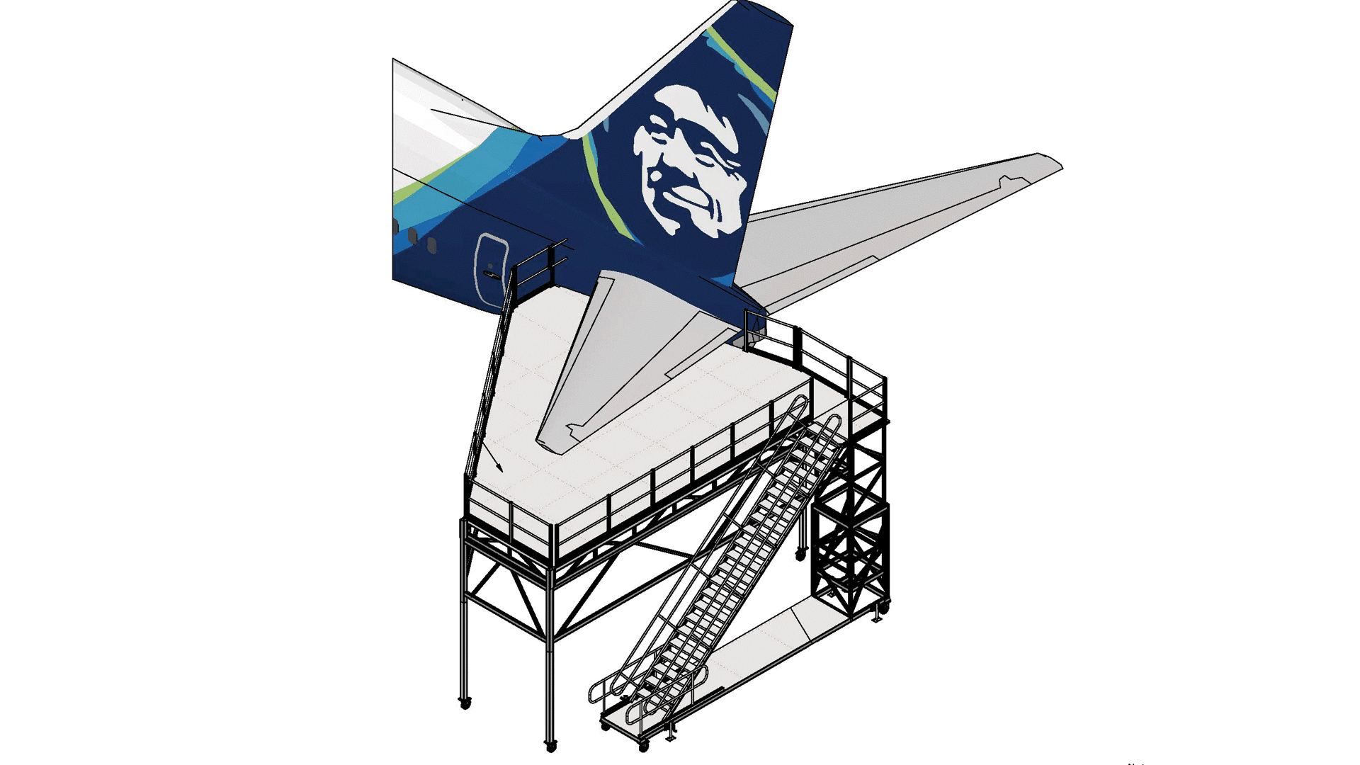 The primary function of this custom-built dock is to elevate technicians to the precise working heights required for detailed inspections of the control surfaces, leading and trailing edges, attachment points, and overall structure. This area is critical to the B737’s pitch control and requires frequent, thorough inspection to ensure flight safety and operational integrity.