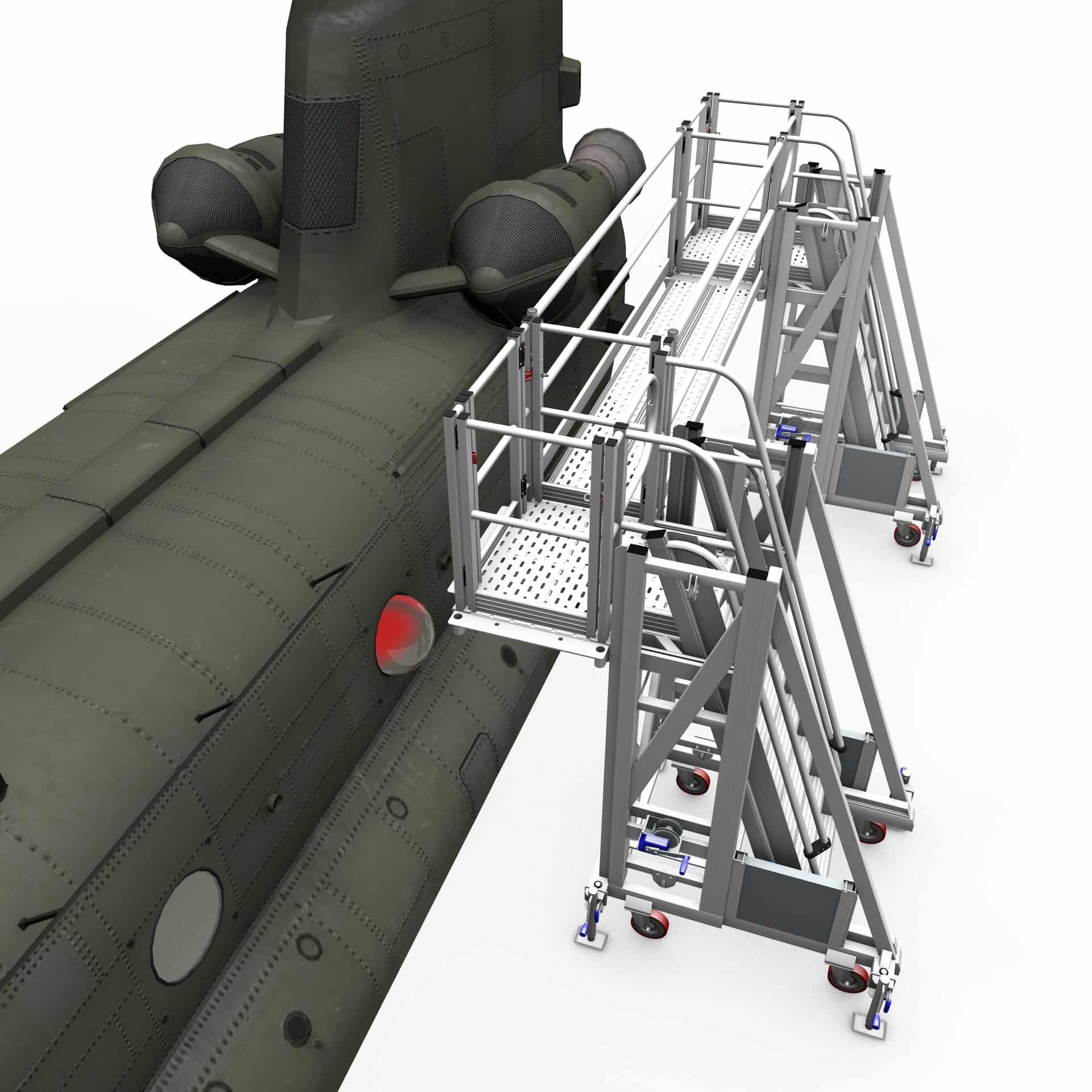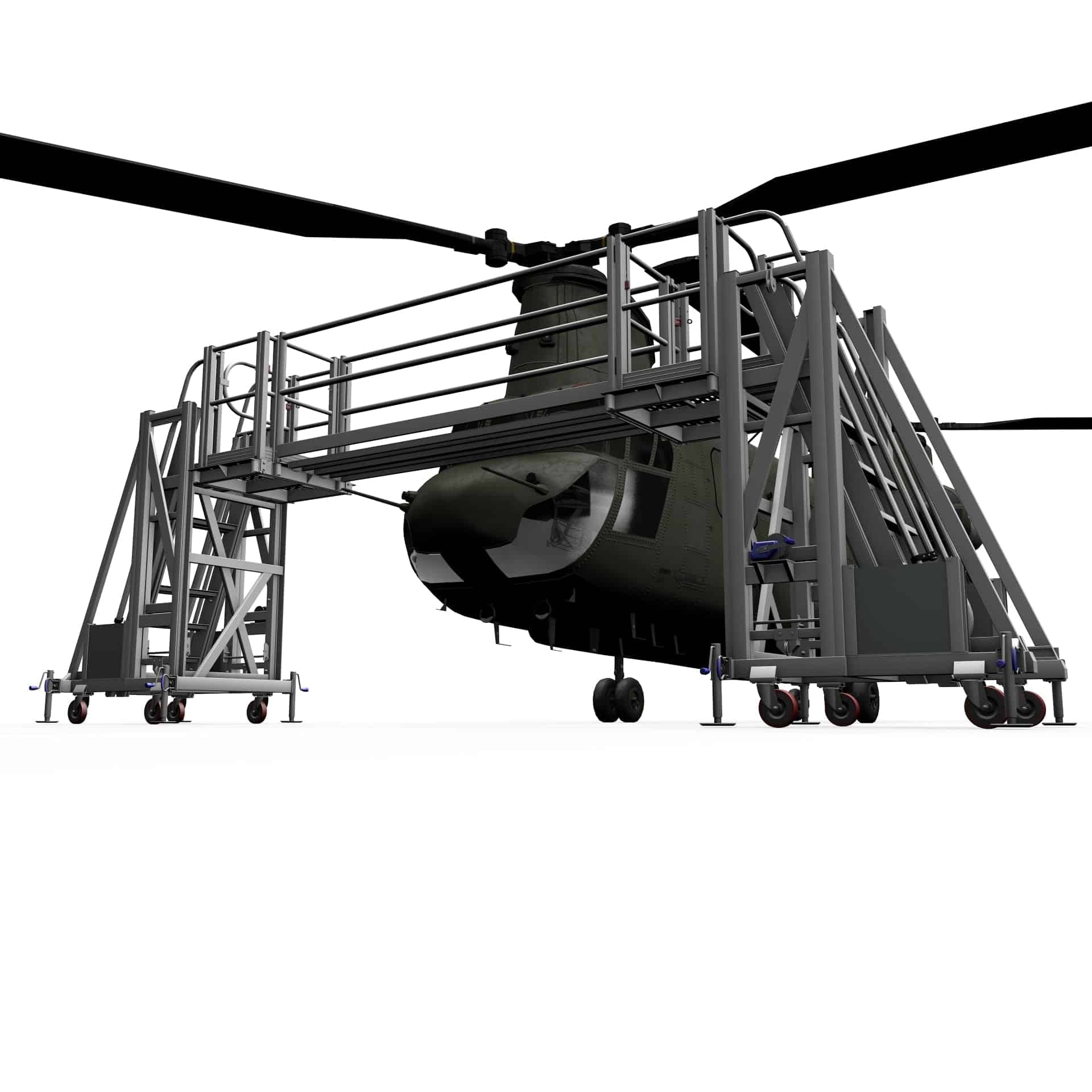 Boeing CH-47 Line Maintenance Platform Set is a compact, mobile, height-adjustable platform system offering flexible multi-directional access and cantilever reach for efficient CH-47 maintenance in hangars and workshops.