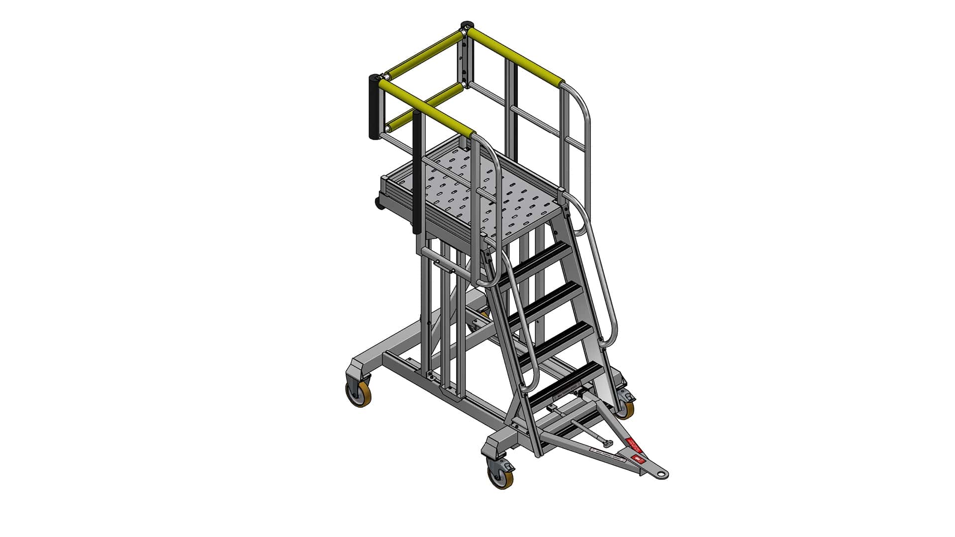 Mobility and ease of deployment are central to the Q400 Oil Check Stand’s design. It is fully towable and mounted on heavy-duty, fully braked, high-speed towable swivel castors. These components ensure the platform can be safely and quickly maneuvered into position on the tarmac or in the hangar and securely locked down for use. The inclusion of a retractable towbar further facilitates swift movement and compact storage when not in use, making maintenance processes more Efficient.