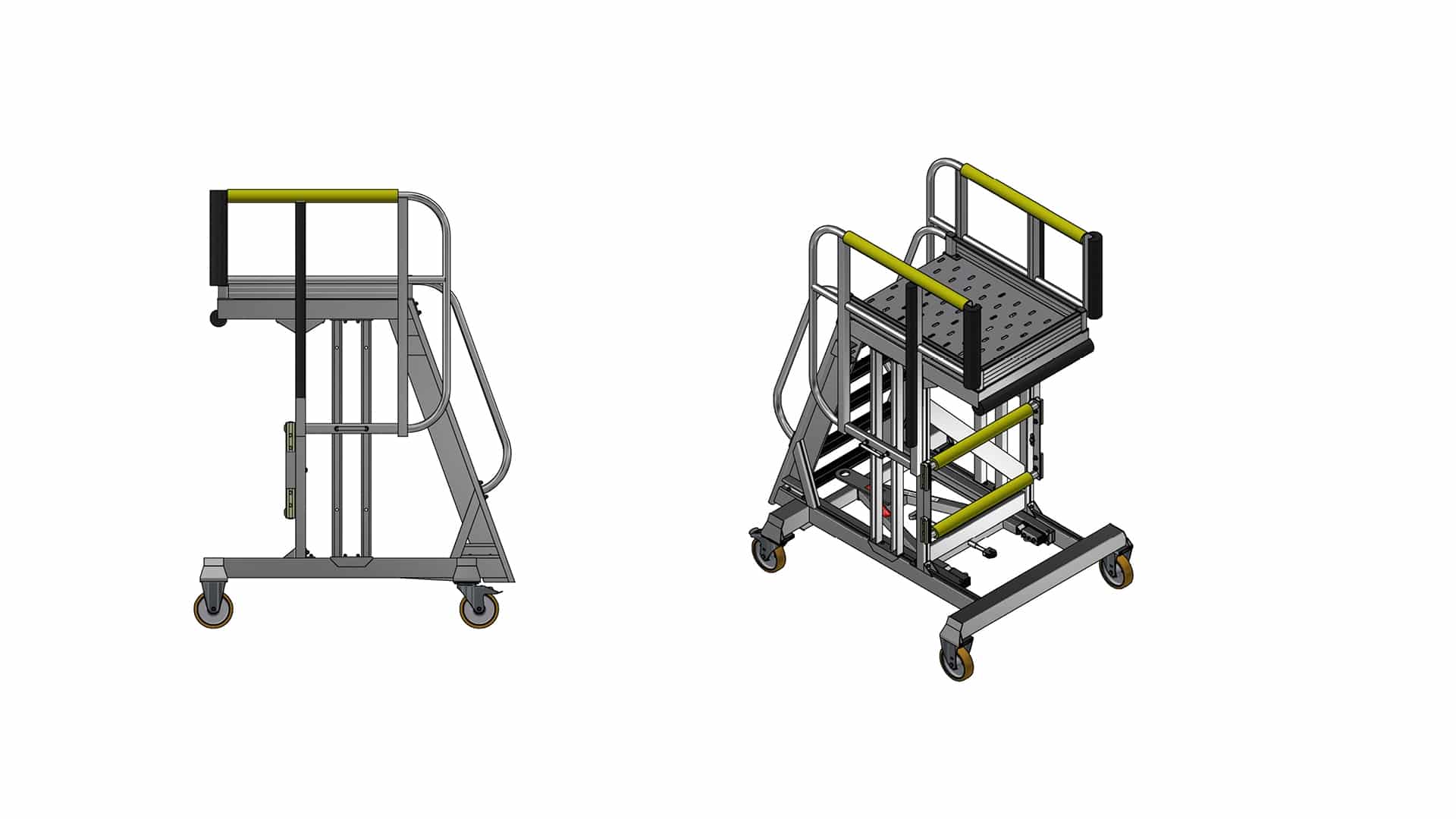 This specialized Q400 Oil Check Stand features a cantilevered platform design, coupled with height-adjustable and telescoping handrails. This sophisticated adjustability allows the platform to be precisely positioned to provide uninterrupted access to the engine nacelles, where the oil check and fill points are located. The design ensures that technicians can work comfortably and securely at the required height for both routine checks and full oil changes, minimizing downtime and enhancing operational safety.