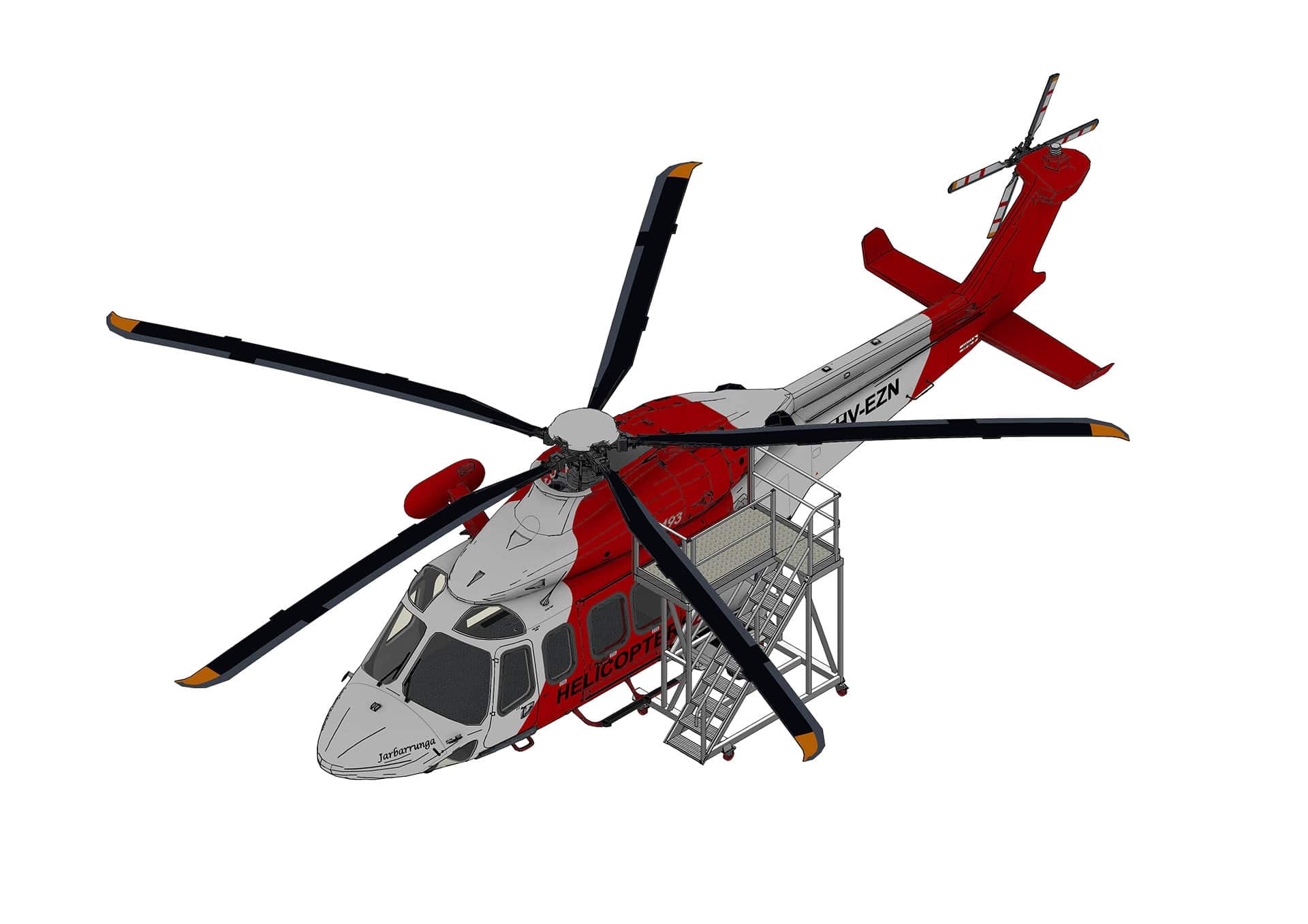 Improve your maintenance capabilities for the Leonardo AW139 with the dedicated AW139 Flight Line Stand. This is a precision-engineered solution designed for efficiency, safety, and unparalleled access to critical areas of this medium twin-engine helicopter. This platform is an indispensable tool that seamlessly integrates into your daily checks and heavy maintenance schedule, ensuring all leading maintenance tasks on the main rotor head area are performed with ease and security.