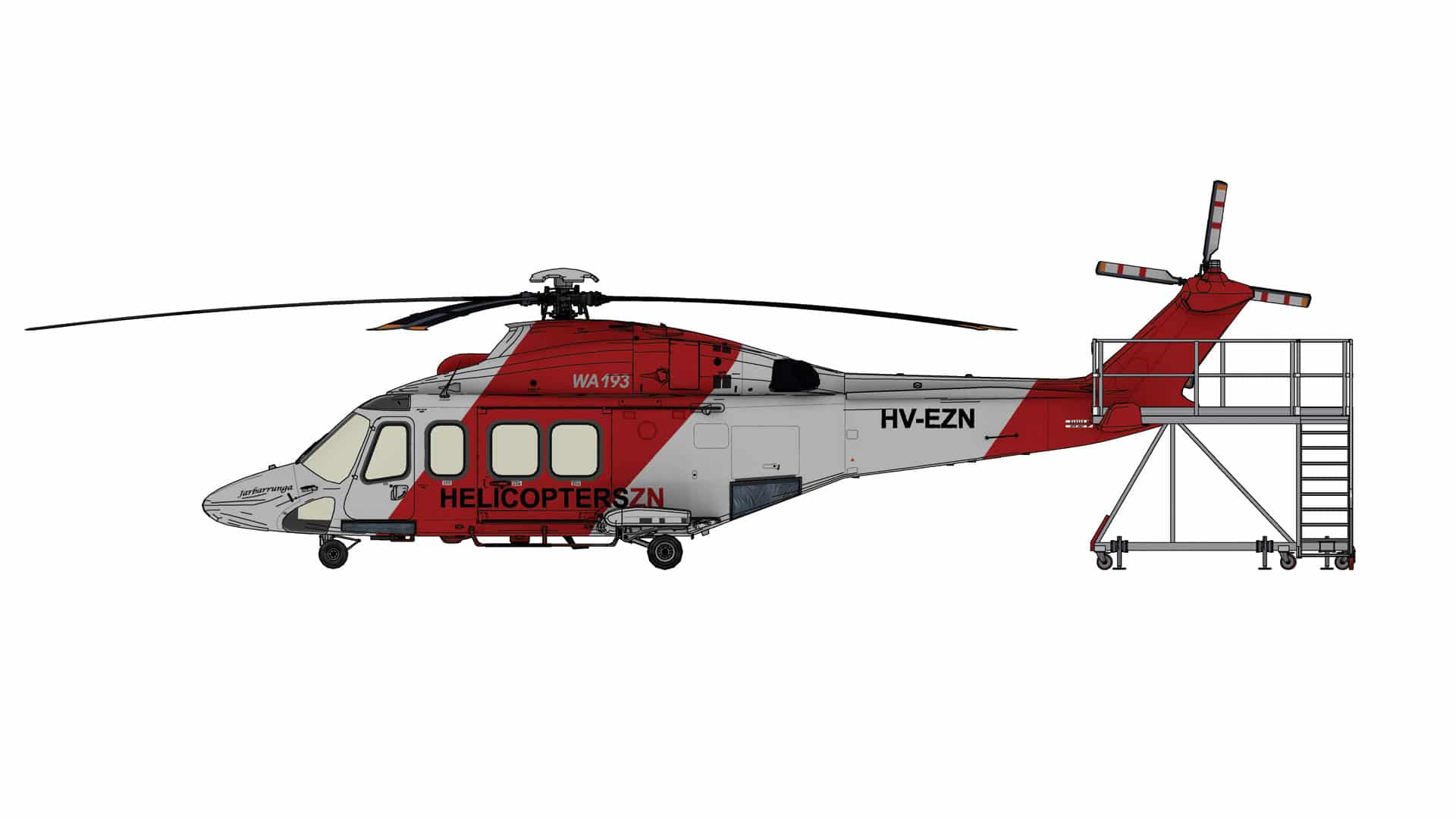 The specialized access platform for the Leonardo AW139 provides complete, safe, and efficient access to the tail and tail rotor section of this medium twin-engine helicopter. This platform is a leading tool designed to streamline the rigorous daily checks and scheduled maintenance procedures required to keep the AW139 operational and compliant.