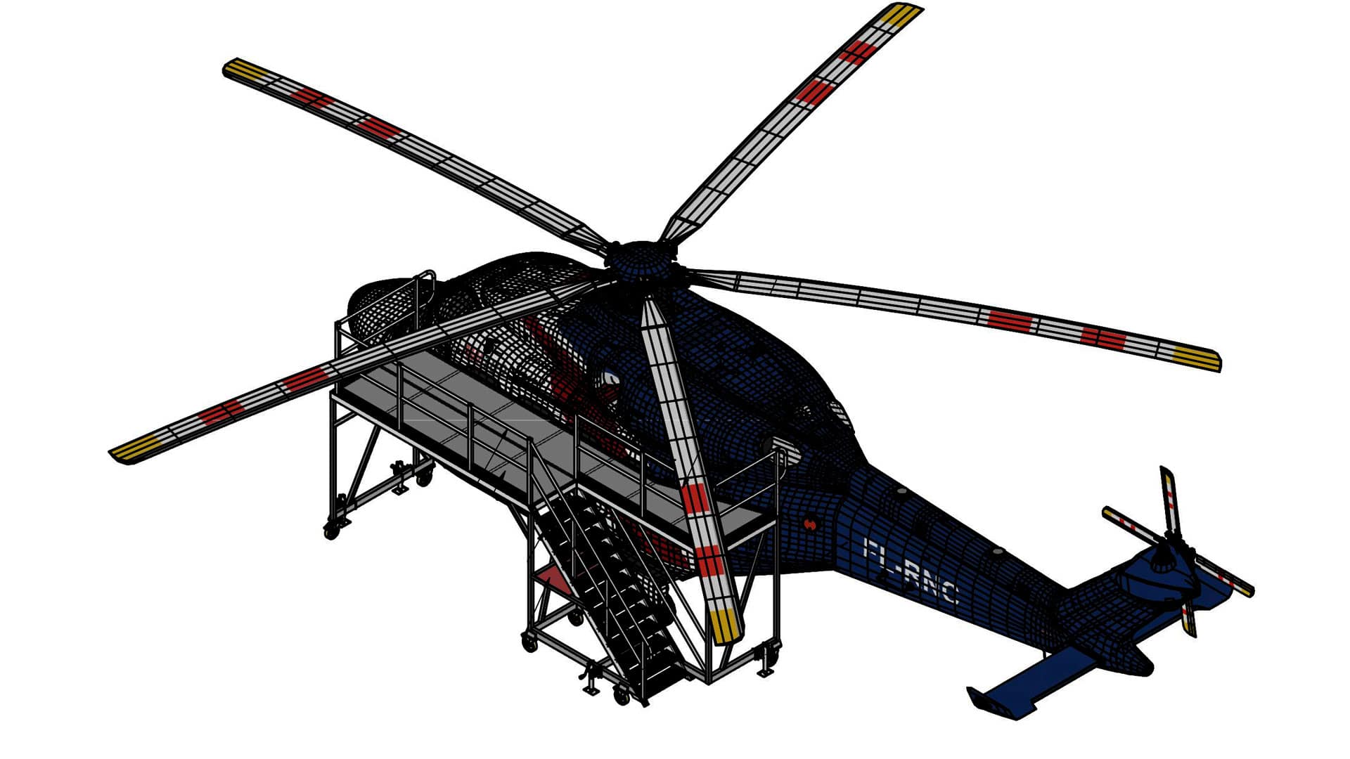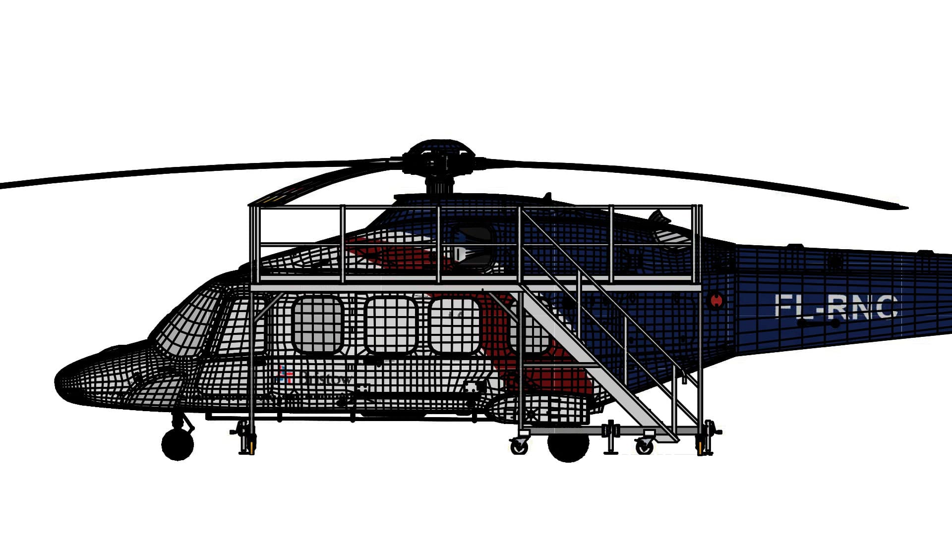 Focusing specifically on the AW189’s unique architecture, these platforms are invaluable for addressing the aircraft’s most complex maintenance areas. The clear span structure provides optimal access for working on the main rotor and its transmission system. With the engines also positioned on top of the fuselage, the AW189 Side Access Platforms offer the necessary height and reach to perform detailed inspections, oil system checks (including the engine/gearbox oil systems located on top), and routine upkeep of these vital powerplants.