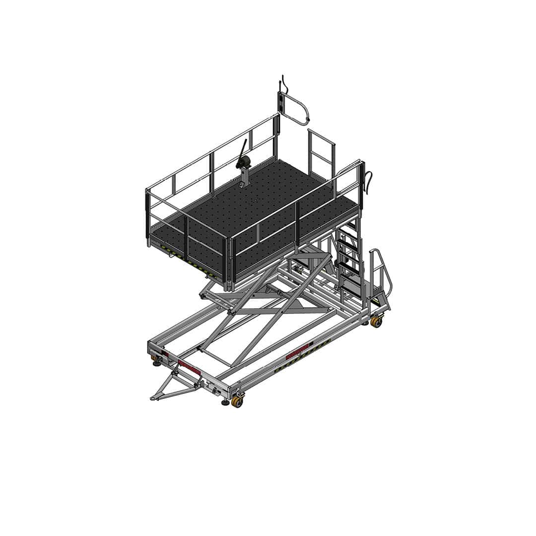 Access to the platform is provided through dual access points, utilizing a combination of a 70-degree access ladder and vertical telescopic ladder options, offering flexibility depending on hangar space and positioning. The telescopic ladder can also be stowed when not required.