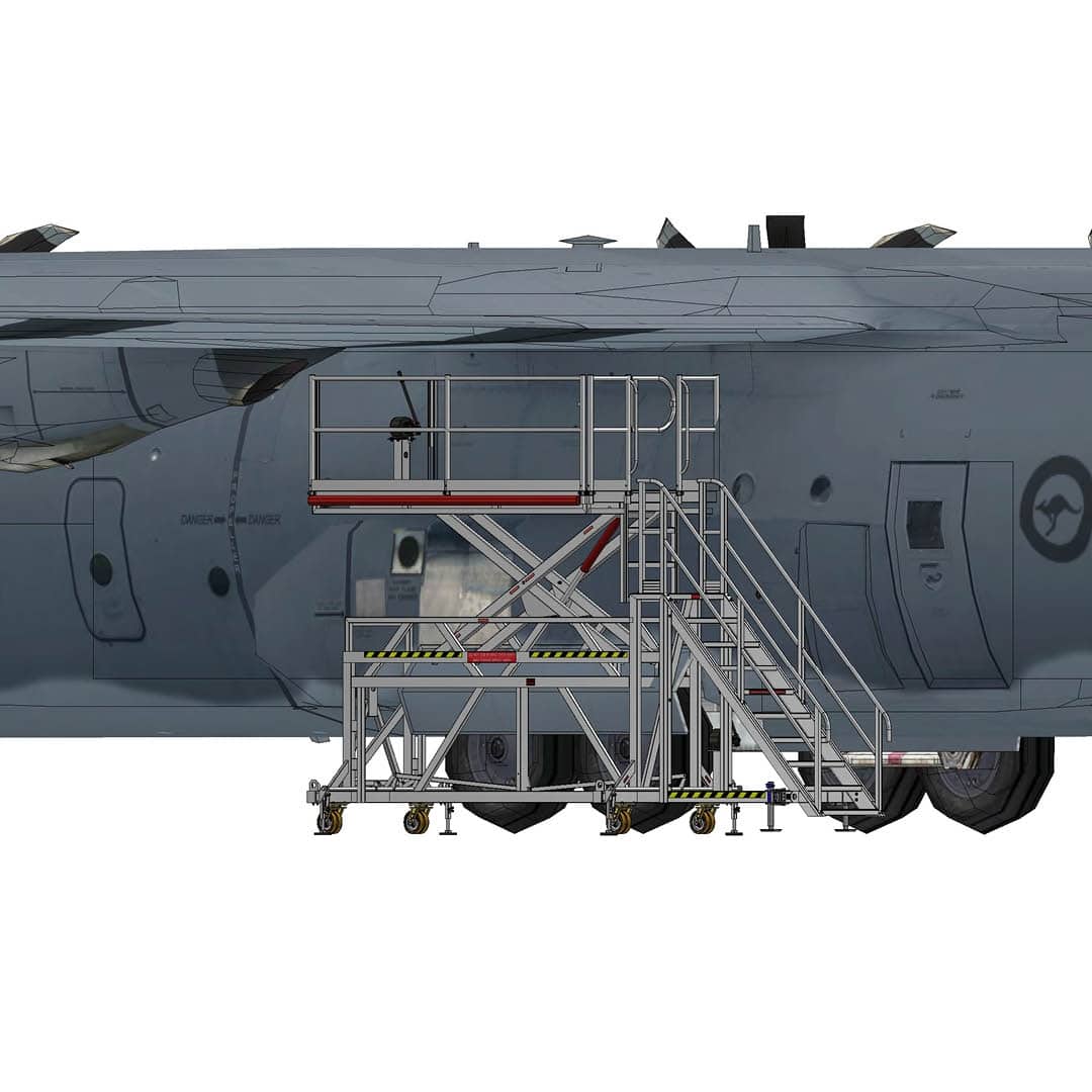 Presenting the specialized Lockheed Martin C-130 Armpit Service Stand, a foundational access solution engineered for high-efficiency maintenance on the C-130 Hercules fleet. This strong platform is methodically designed to facilitate comprehensive servicing and inspection within the critical “armpit” zones—the complex areas adjacent to the main landing gear on both the left-hand (LH) and right-hand (RH) sides of the aircraft fuselage.