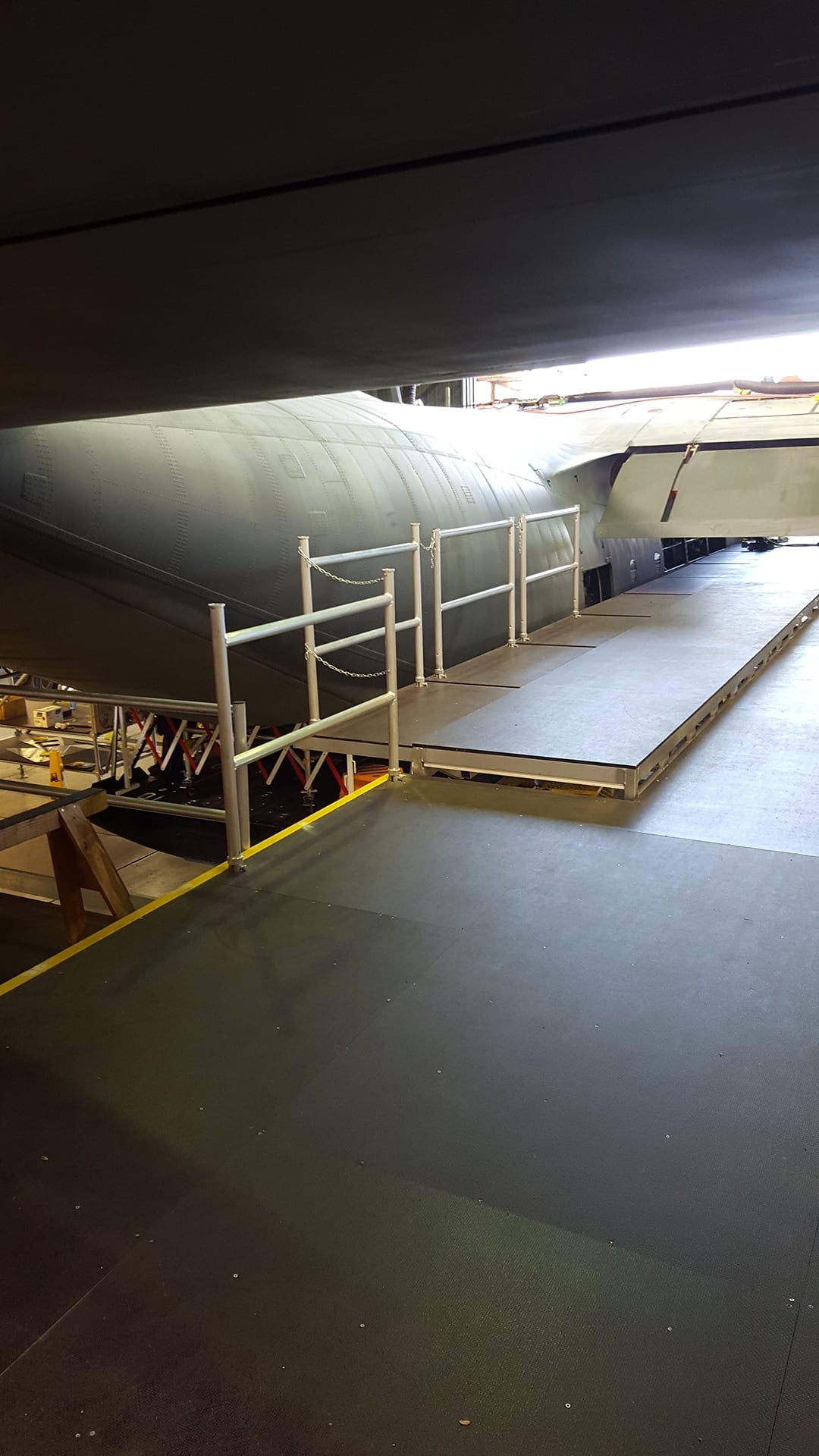 Constructed from heavy-duty steel base platforms and structural aluminum custom mobile platforms, the C-130 Docking System delivers stable and safe access to every zone needing inspection, repair, or modification. The modular design ensures the entire structure can be efficiently containerized and moved to new base locations or deployed quickly for maintenance operations worldwide. This supports our value of efficiency.