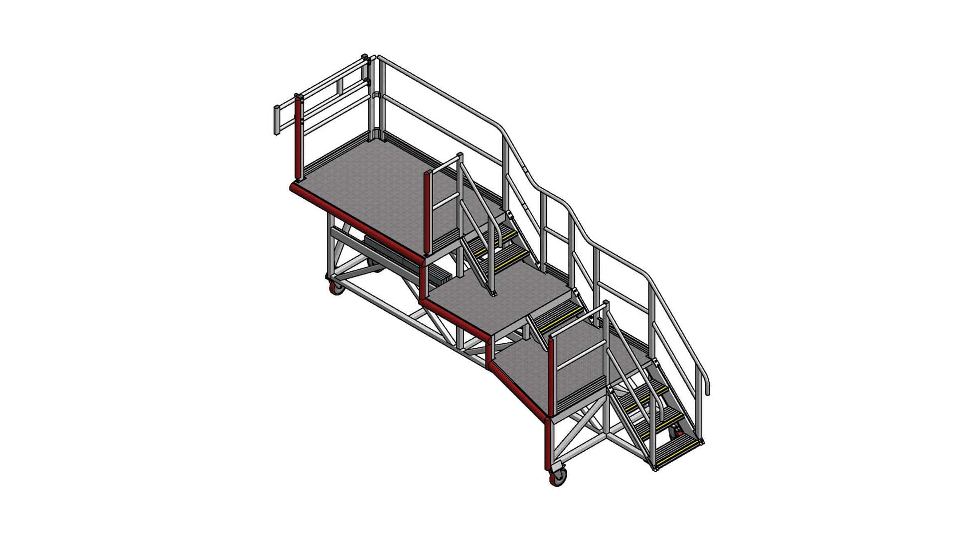 The three-tiered design specifically addresses the varying heights required across the maintenance envelope: