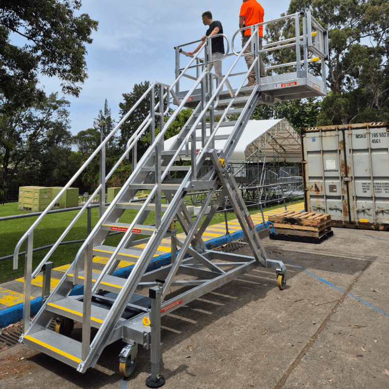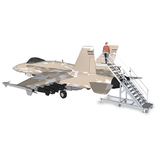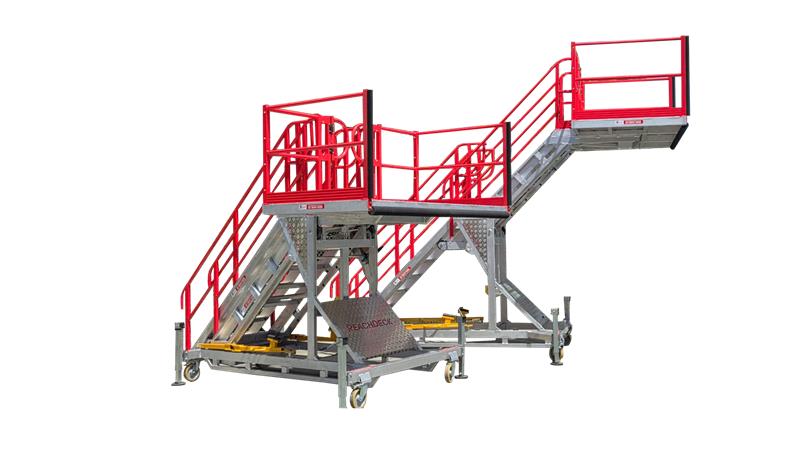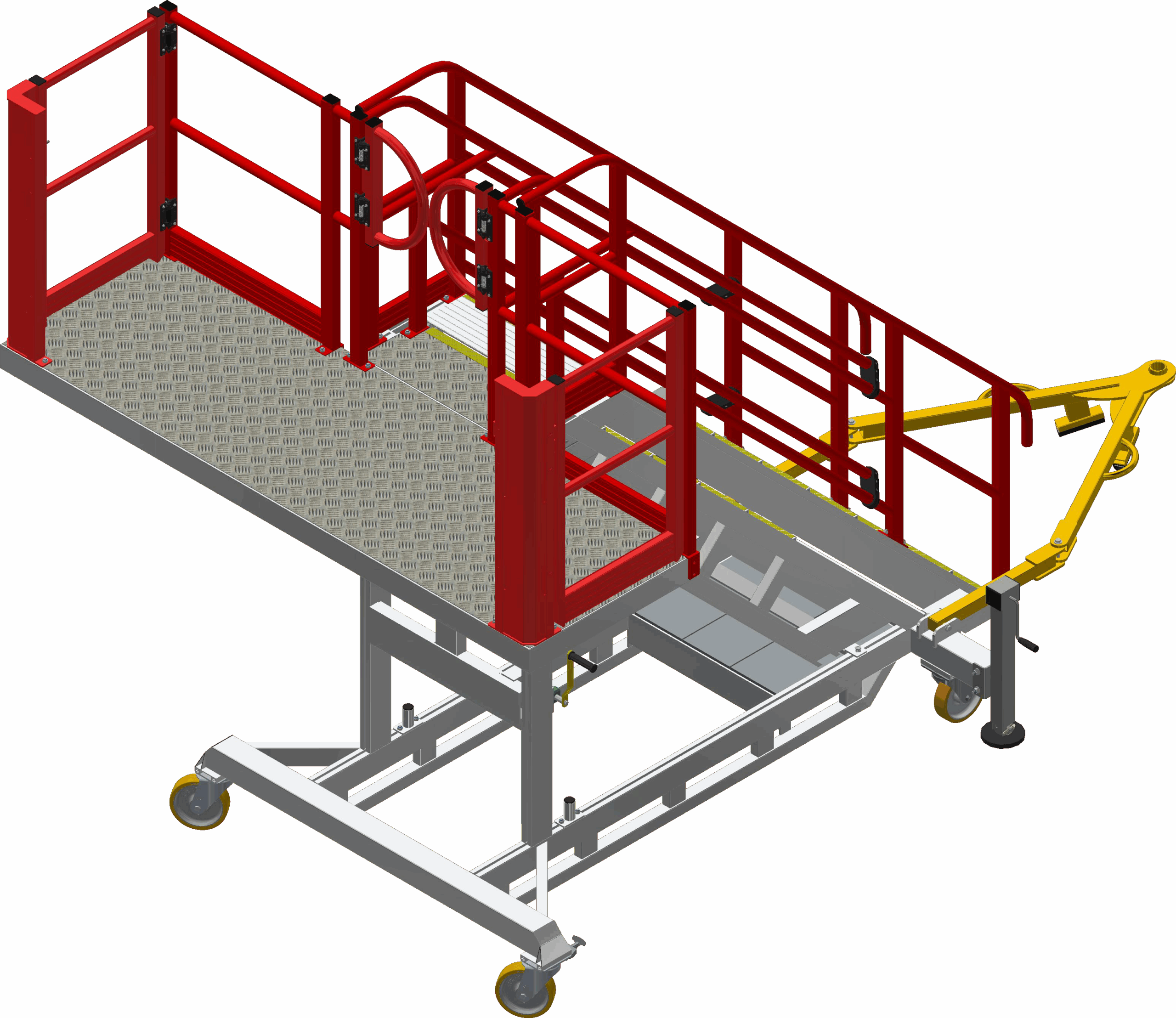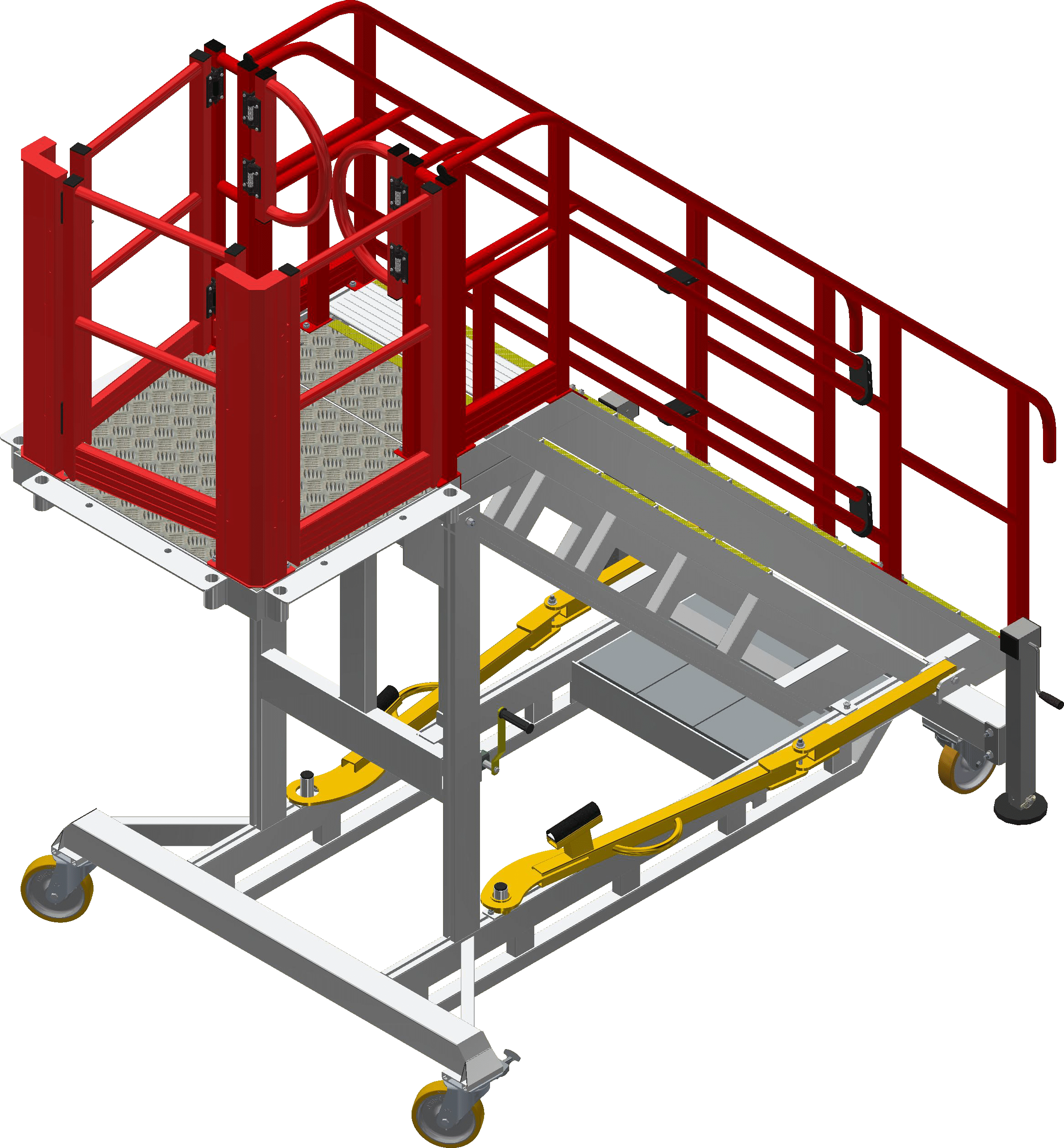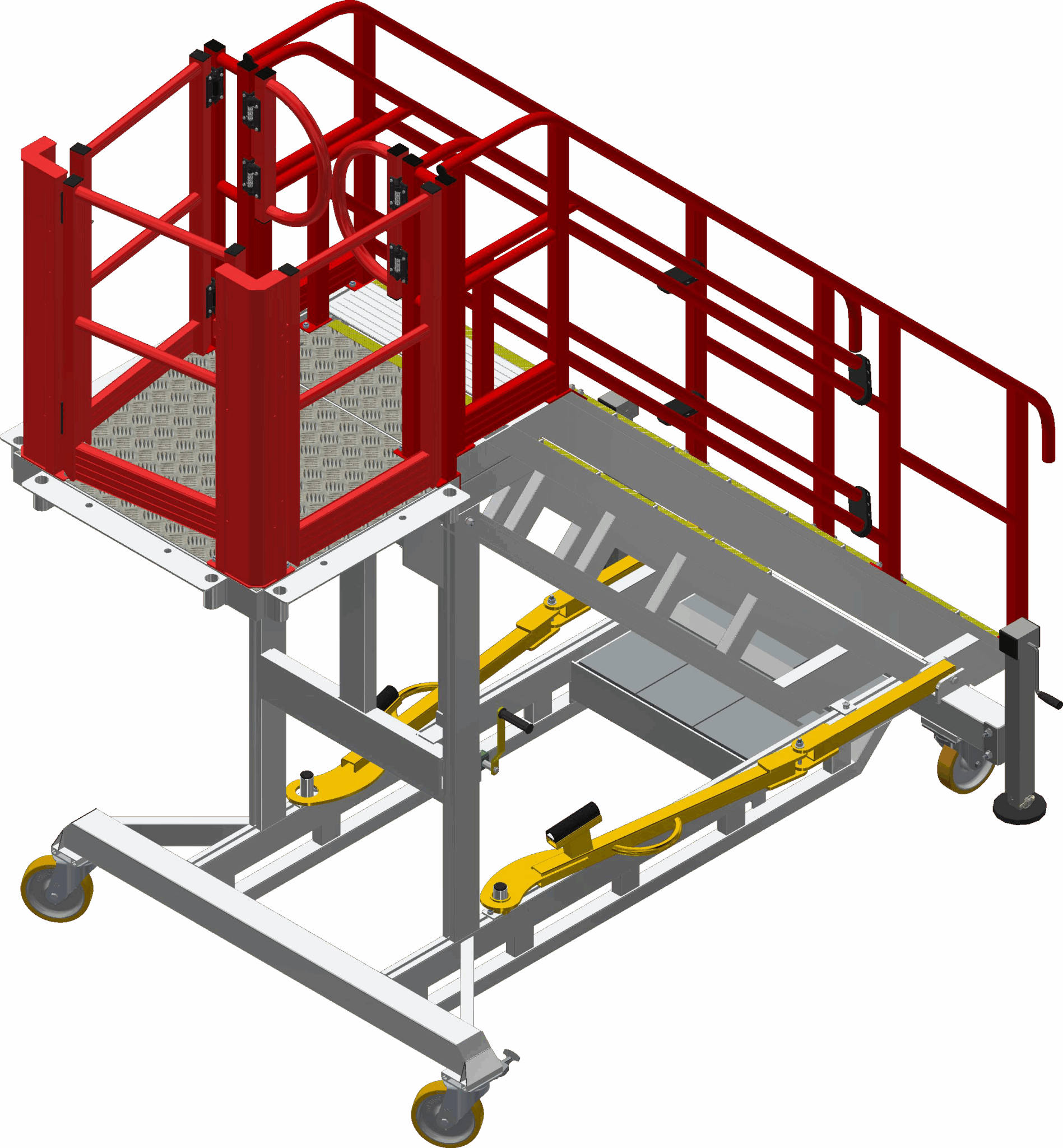 A constant challenge when access is required to heavy plants, aircraft, and other large vehicles is getting access to all required areas. Often, a variety of platforms is required to achieve all the access that is required. In addition, due to the irregular shapes of the equipment involved, a cantilevered platform is often required to reach over obstructions and right into the service areas.